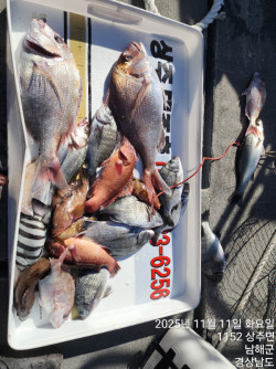 참돔 선상 소식오늘은 갯바위 조사님들이 조용한 틈을 따고선상예약이 있어 출조했심다너무 빠른 조류에 물도 물 맘대로 가고 정말 힘들었네요그래도 대상 어종인 참돔 8짜6짜2마리 잔바리 몇마리감시 5짜 4짜 등 재법 손맛을 보고 왔습니다물만 길대로 흘려 주면 정말 잼난 낚시를 할것 같습니다동영상은 대준호 밴드에 올려있습니다참고하세요감성돔은 다사진에 담지 못 한점 양해바랍니다*** 남해 신대준호 예약 안내 ***예약문의 : 010-3883-6256오시는길 : 경남 남해군 상주면 상주리 1380-2홈페이지 :https://sindaejun.sunsang24.com/네이버 밴드 상주대준호《갈치출조》♧가까운 내만부터 먼바다 까지
